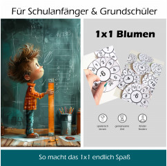 Lernen darf Spaß machen! Mit den liebevoll gestalteten 1x1 Blumen wird das Einmaleins zum Kinderspiel. Die Kinder lernen selbstständig die 10er Reihe und können sich dabei ganz einfach selbst kontrollieren: Durch Anheben des Blütenblatts erscheint die richtige Lösung – ganz ohne Hilfe.